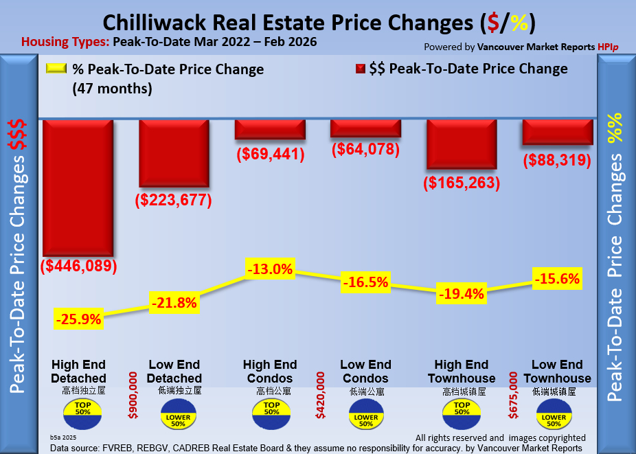 Sales remained slow due to affordability challenges, economic uncertainty, and high inventory, keeping buyers firmly in control. While conditions are still soft, the smaller price adjustment suggests the market may be starting to stabilize compared to late fall. Bottom line: prices are correcting at a slower rate, buyers still have leverage, and the Fraser Valley is holding up better than Metro Vancouver.